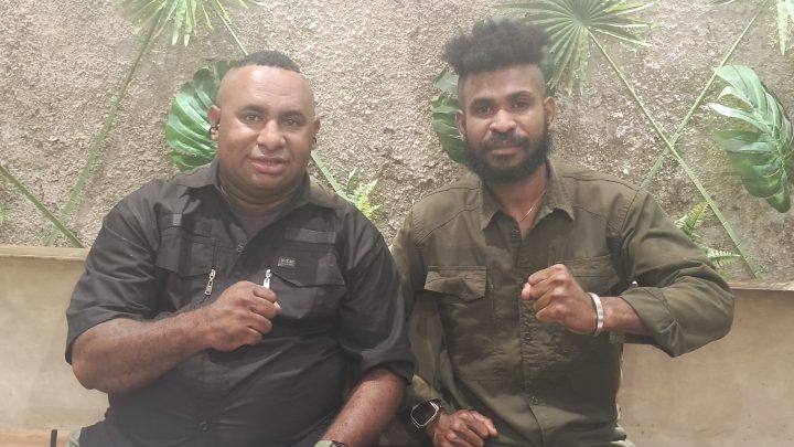 Ketua FKBN RI Papua Tengah yang juga Waket I DPD BMP RI Papua Tengah Samuel Sauwyar bersama Ketua DPC BMP RI Kabupaten Nabire Menas Maniani