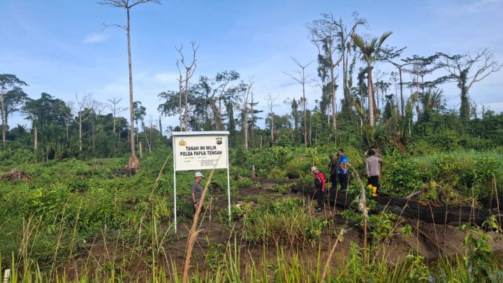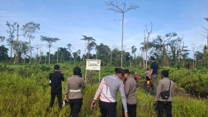 Nabire, Papua Tengah–enagoNews – Kapolres Nabire AKBP Samuel D. Tatiratu, S.I.K. mendampingi Kapolda Papua Tengah KOMBES POL Jermias Rontini, S.I.K., M.Si. dalam kegiatan peninjauan lokasi tanah yang direncanakan sebagai pembangunan Markas Komando (Mako) Polda Papua Tengah di Kampung Karadiri, Distrik Wanggar, Kabupaten Nabire, Rabu (11/03/2026).