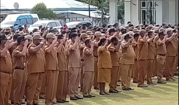 Nabire, Papua Tengah – GALA MANDIRIN– Pagi itu, halaman Kantor Pemerintah Daerah Nabire terasa berbeda. Udara masih menyimpan sisa embun, namun barisan Aparatur Sipil Negara sudah berdiri rapi, menyongsong hari kerja pertama di kalender 2026. Tidak sekadar apel rutin, pagi itu menjadi penanda: sebuah awal baru sedang dicanangkan.